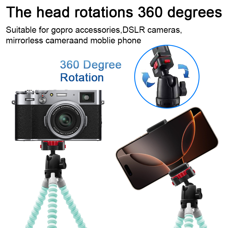Vertical & Horizontal Shooting:The ball head allows the smartphone clip 180° rotation, no matter phone or camera, support veritical and horizontal shooting
